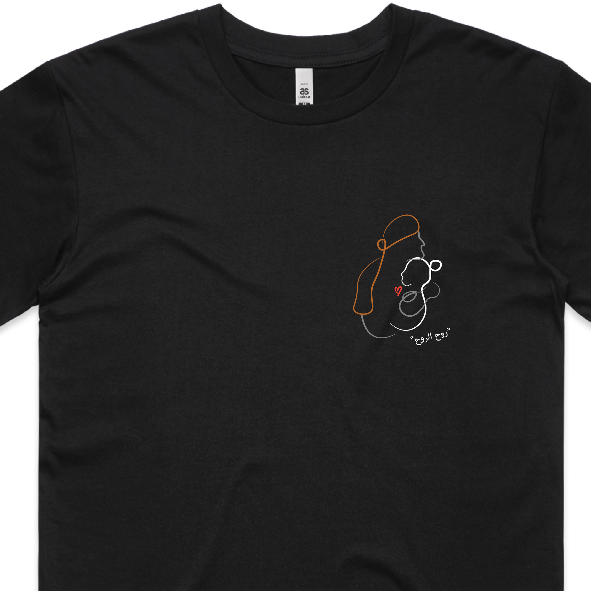 A demonstration of the humanity that the world chooses to neglect. In the shape of an anatomical heart, this is a representation of the Palestinian grandfather, Khaled Nabhan, embracing his granddaughter, Reem, who was murdered in the ruthless attacks on Gaza. He opens her eyes and kisses them as he refers to her as "Ruh al-Ruh" (i.e. the soul of my soul).