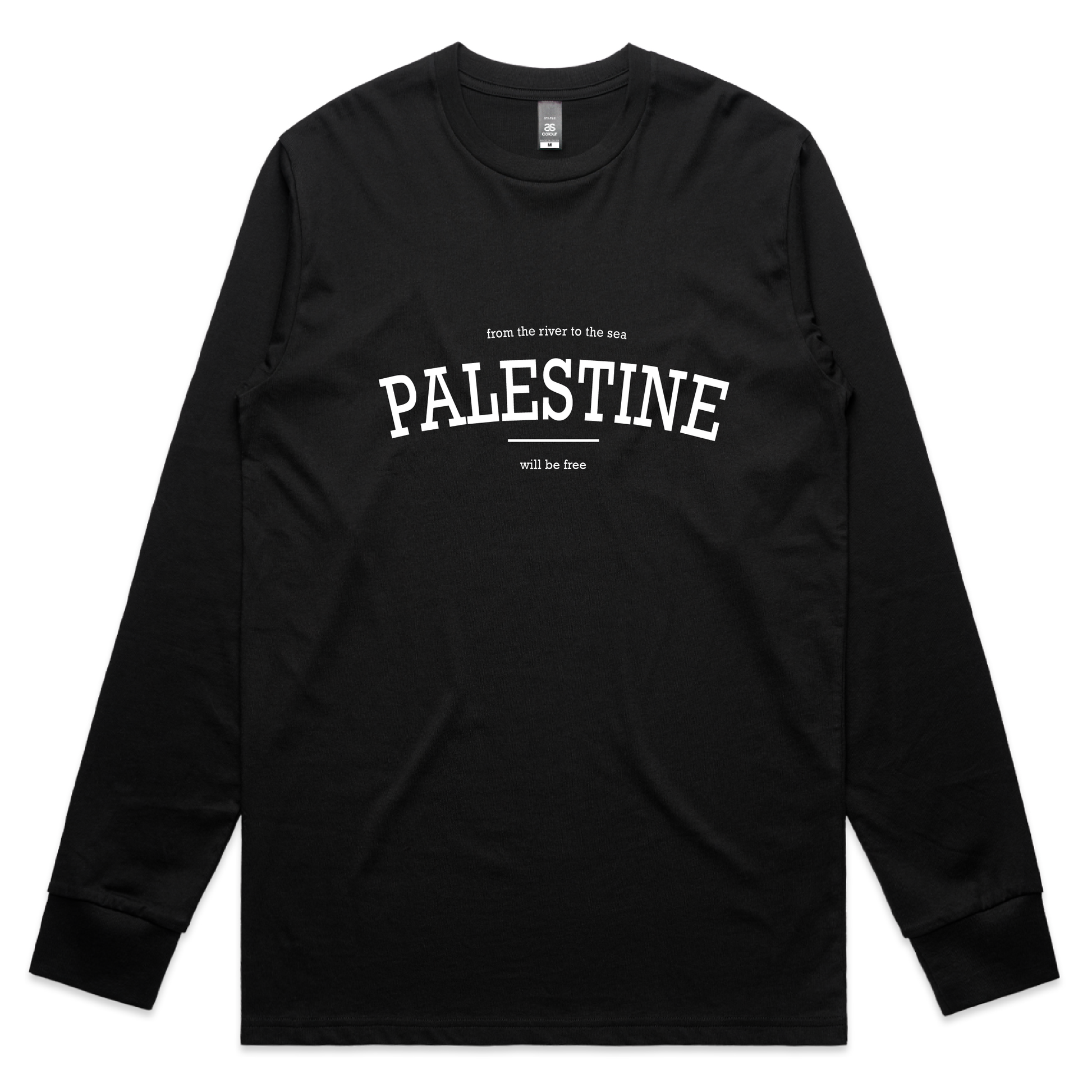 Palestine written in a varsity style font and layout. Make a bold statement.
