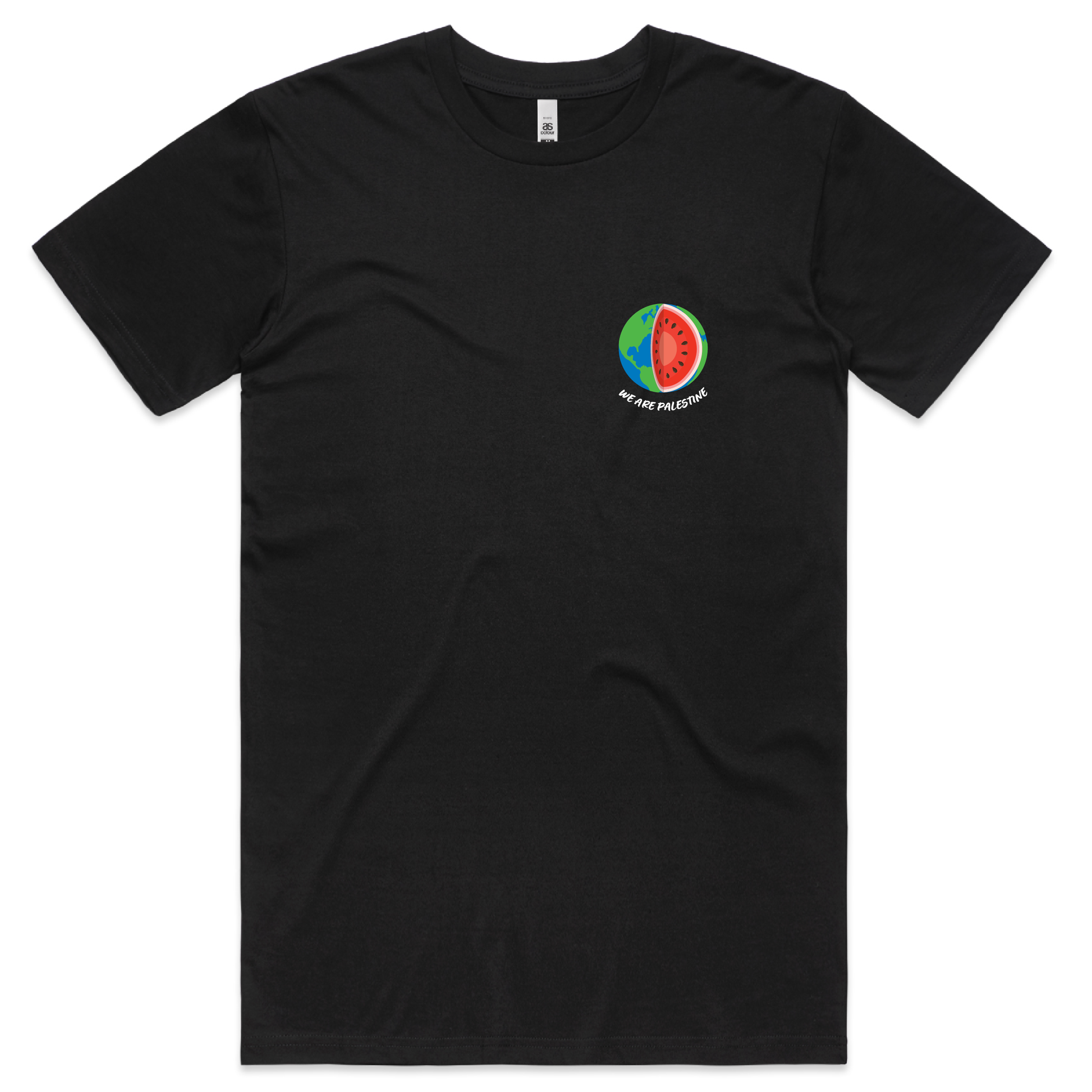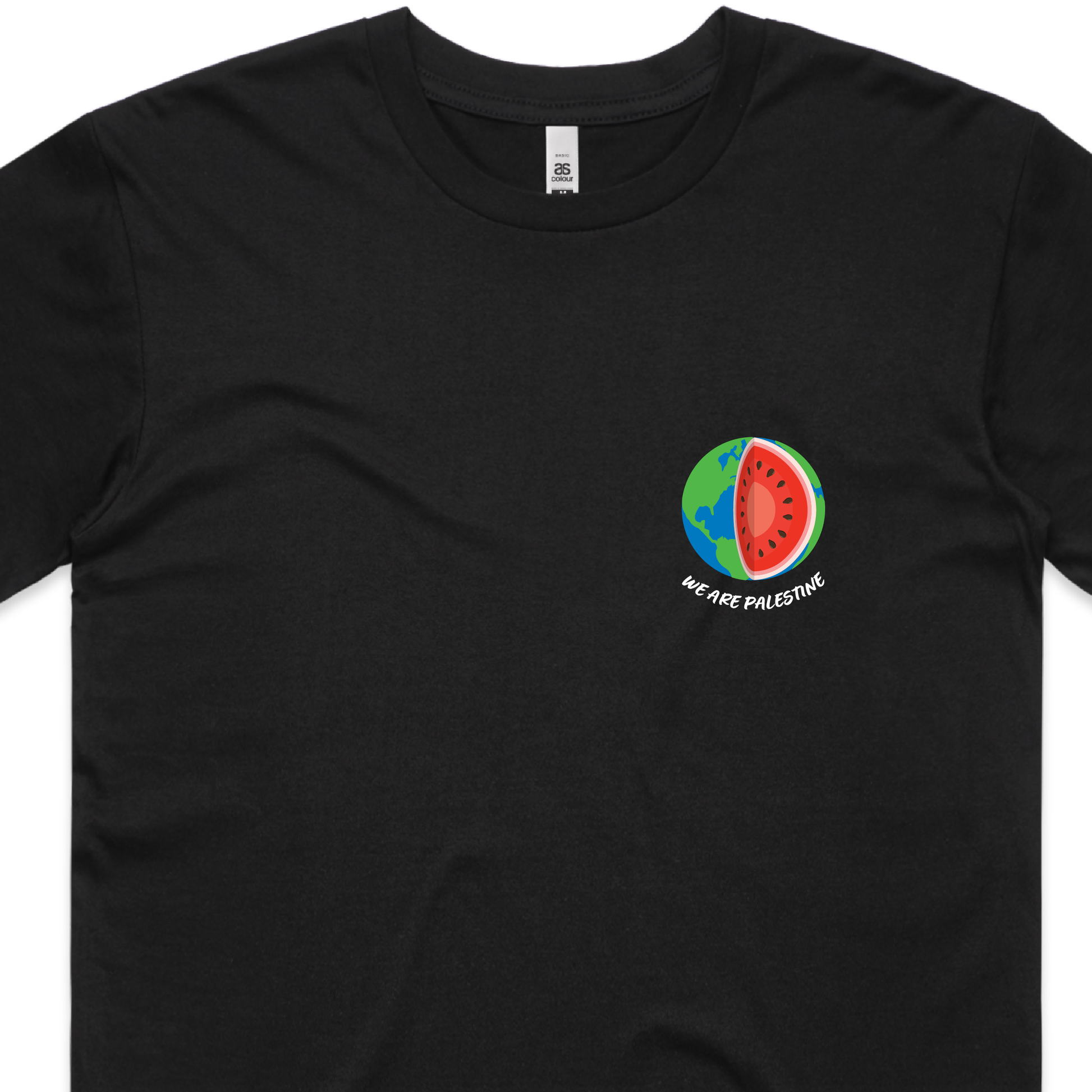 Make a powerful statement with our "We Are Palestine" t-shirt. The Earth is reimagined as a watermelon - an enduring symbol of the Palestinian resistance and identity. This design captures an essential truth: our world cannot truly be free until Palestine is free.