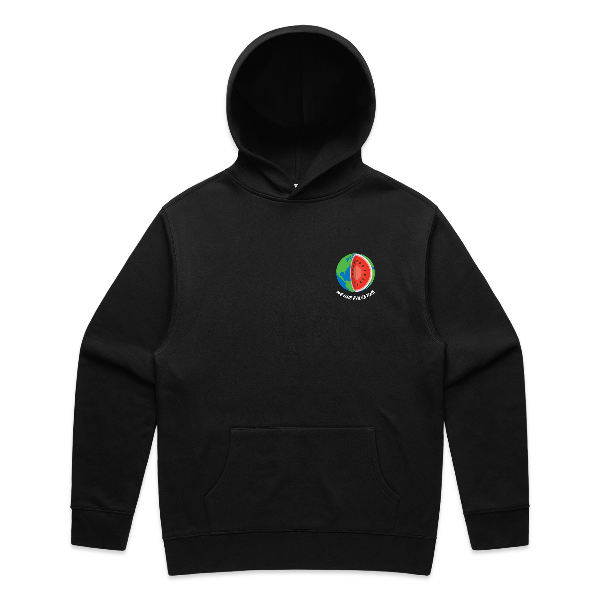 Make a powerful statement with our "We Are Palestine" hoodie. The Earth is reimagined as a watermelon - an enduring symbol of the Palestinian resistance and identity. This design captures an essential truth: our world cannot truly be free until Palestine is free.